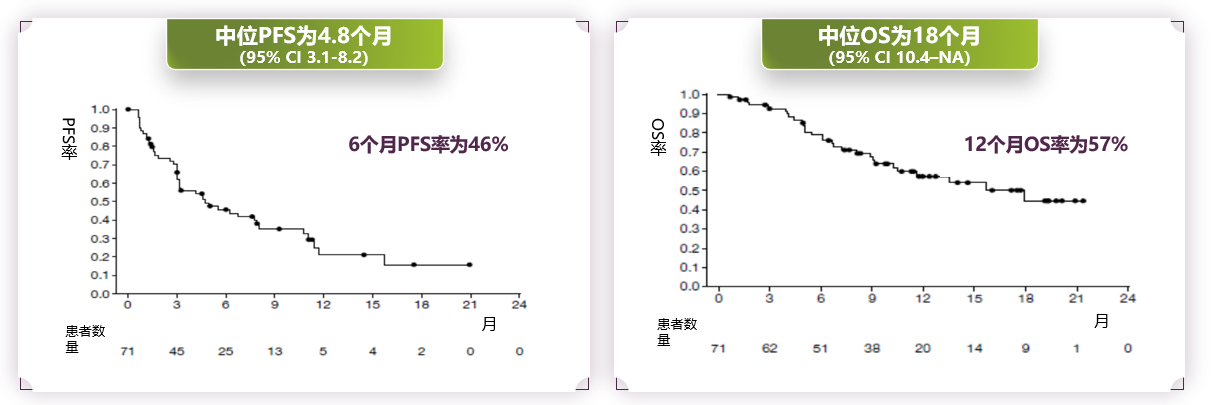 中位无进展生存期为4.8个月,预计6个月PFS率为46%