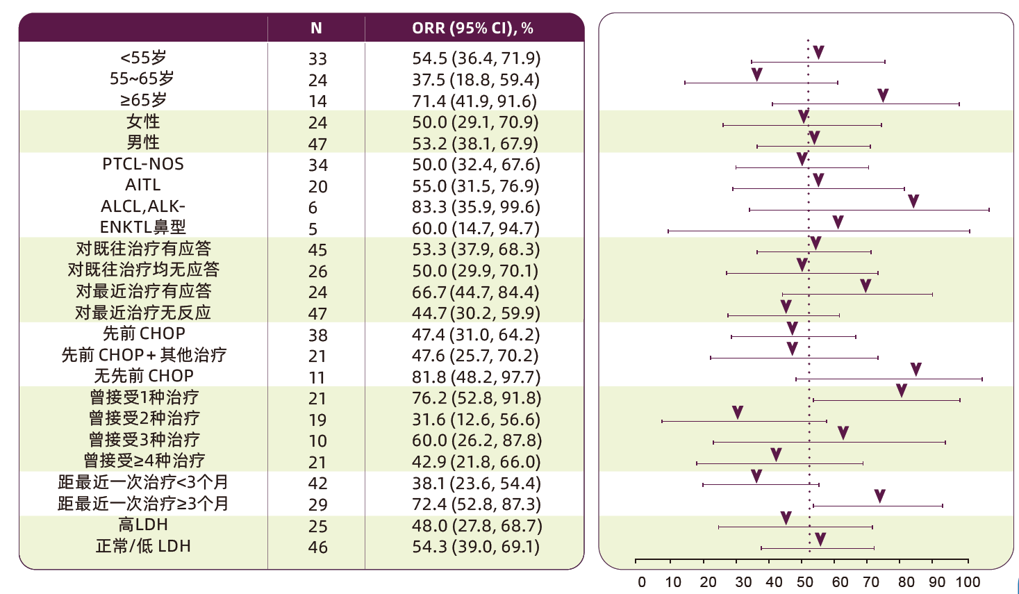 先前无CHOP暴露、末次治疗≥3个月、只接受过1线治疗亚组获益更佳